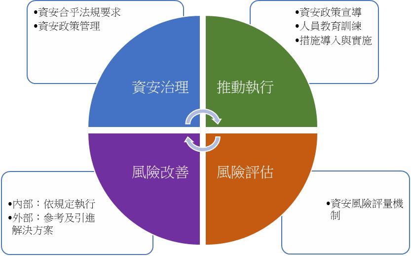 為提升資訊安全管理,資訊部負責訂定集團(含子公司)資訊安全政策、規劃、執行、推動與落實,以降低資安風險及提升同仁良好的資訊安全意識,定期檢討及向董事會報告資安政策,定期向董事會報告資安治理概況。