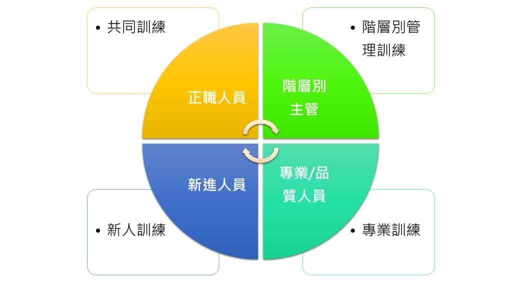 包含工作專業與品質人員資格課程,依據從事各職位所需專業能力,加以設計發展以求適才適所。